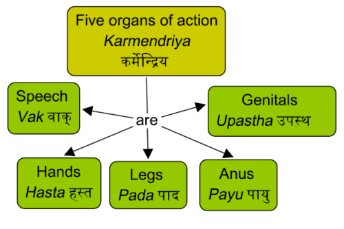 At the beginning of Creation, when the Paramātmā desired to manifest, the foundational underpinning that was formed from the Tamoguna are the five elements or the panca mahābhūtas/tatvas: Ākāśa (Ether), Vāyu (Air), Agni (Fire), Apah (Water) and Pṛthivī (Earth). These tatvas were divided into the panca gyānendriyas (śrotra, tvak, cakṣu, jihvā and ghrāṇa) and panca karmendriyas (vāk, pāṇi, pāda, pāyu and upastha). The gyānendriyas were composed from the Sātvikāmśas of the panca tatvas and the karmendriyas were composed from the Rajo amśas. The entire Sātvikāmśas of the tatvas were further sub-divided into mana and buddhi. The collective Rajo amśas united to form the panca prāṇas (prāṇa, apāna, samāna, udāna and vyāna). These seventeen atributes comprising the five gyānendriyas, karmendriyas, prāṇas, mana and buddhi, combined to form the sukṣma śarīra[1]. The divinity in these combined attributes is known as Hiraṇyagarbha and individually in them as Taijas. This divinity, in order to fulfill the desires of these newly-born material bodies, further sub-divided the Panca Tatavas into sets of five by conmmingling the elements. It is from this pentagonic division and sub-divisions of the five Tatvas that this universe, the 14 bhuvanas (sapta lokas and sapta pātālas) and the gross body was fashioned. Hiraṇyagarbha expanded himself to his omniform within this gross body and and the Taijas manifested itself as the devatas, animals, birds and human beings to ultimatley create this world or viśva.