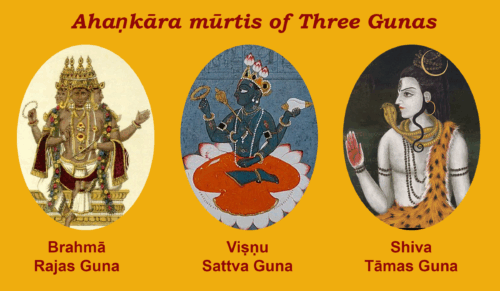 It is from the distortions or the vikāras of these guṇas that the 24 tatvas which include the Mahat, Buddhi, Ahaṇkāra, the pañca Tanmātrās, the pañca Mahābhūtas, the daśa Indriyas and the Mana from which both the animate and inanimate worlds are created. This created; manifestation of the Supreme Being is Prakṛti.