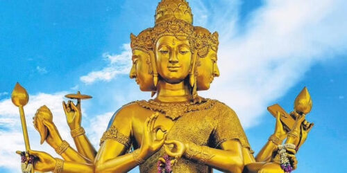 In the beginning there was the great Void. The five primordial elements or the pañca bhūtas, the 14 lokas or the caturdaśa bhuvanas, the Universe, dyu and Space, water and air, sound and light nothing existed. There was neither death nor life, no day nor night, neither beginning nor end. There existed only the one Brahmaṇ, immersed in the mire of dark ignorance and undivided from its Māyā, formless and without any attributes or qualities. Then Parameśvara Brahma desired to create, and upon this desire, creation took place and the Universe unfolded.[1] The Supreme Being appeared with qualities and attributes; its creative energy latent within was stirred and activated, and manifested itself, to eventually give birth to this splendorous world.