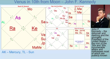 This is another chart with Śukra in the 10th from Chandra, John F. Kennedy, he also had a similar issue.