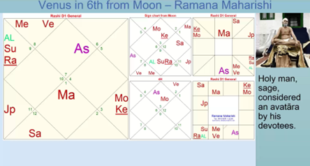 And it is also in the chart of Ramana Maharishi. Moon is again in the 6th from Moon.